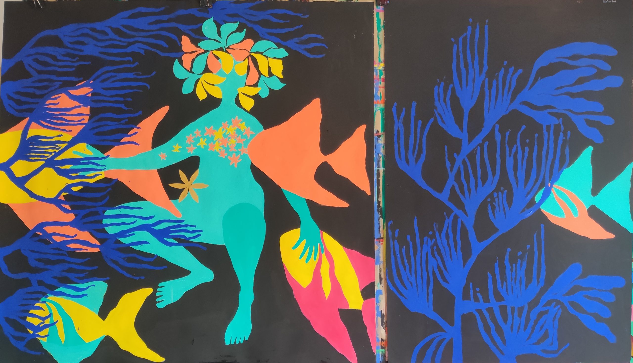 - AQUALIFE 2 - 250cm x 150cm - gouache pigments naturels sur papier