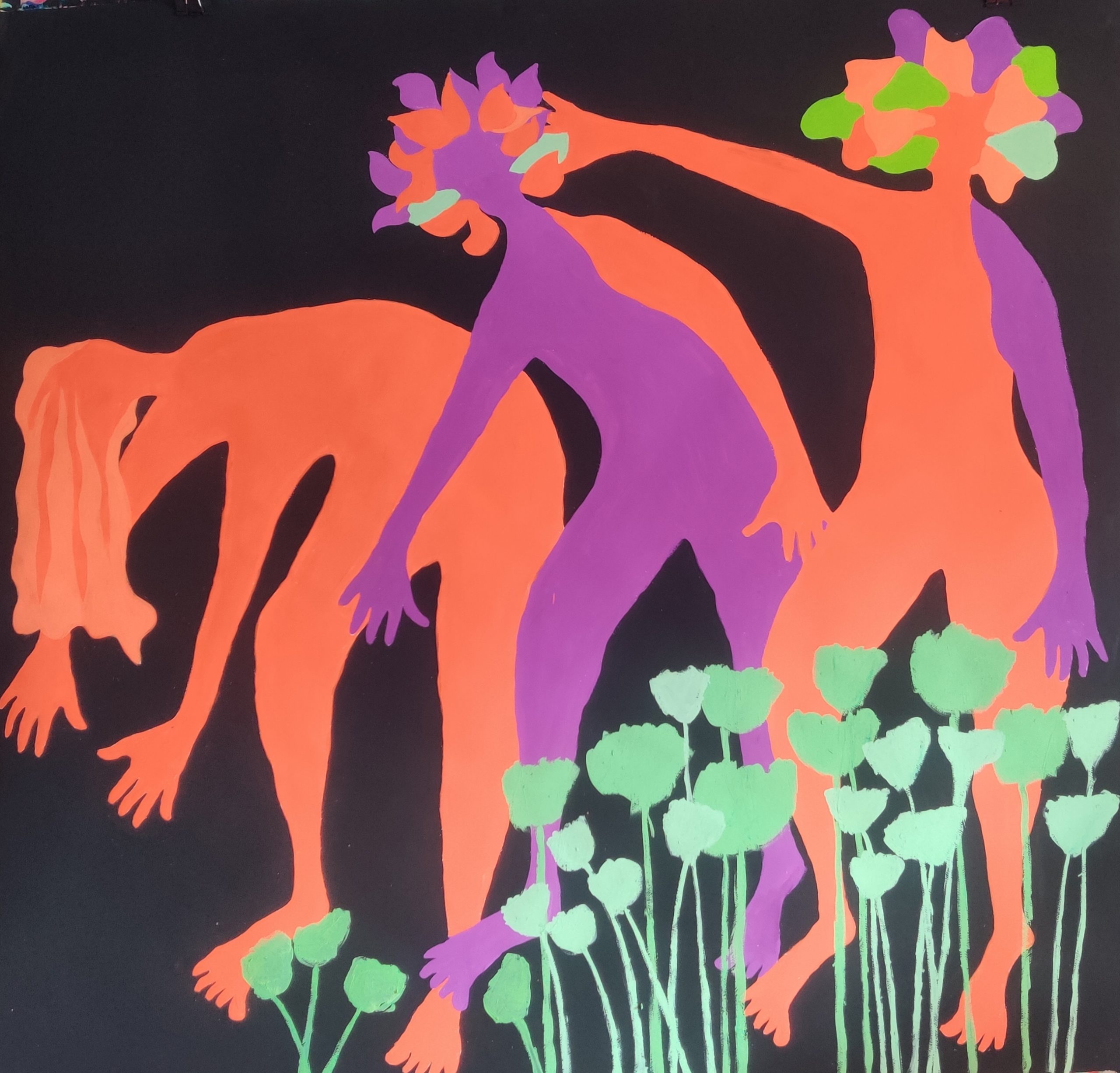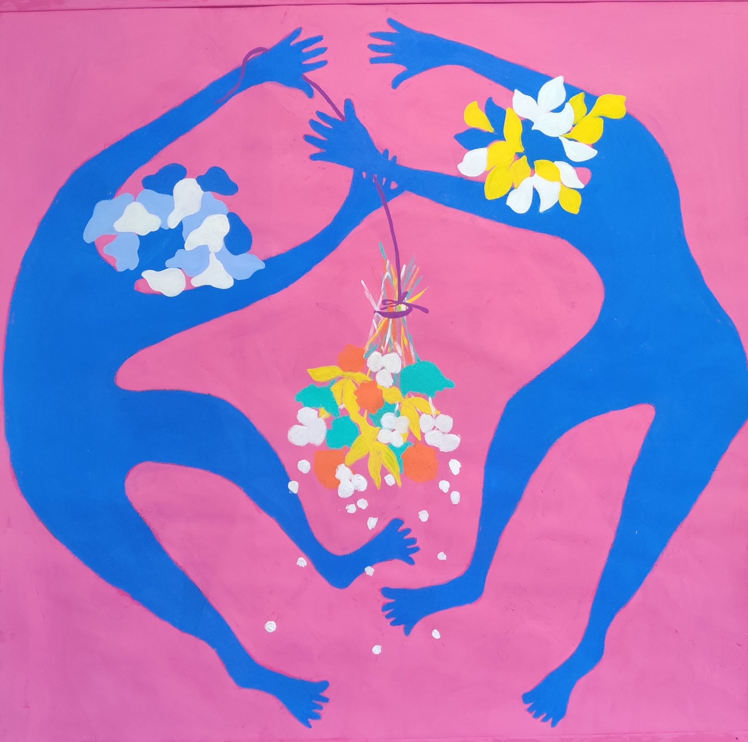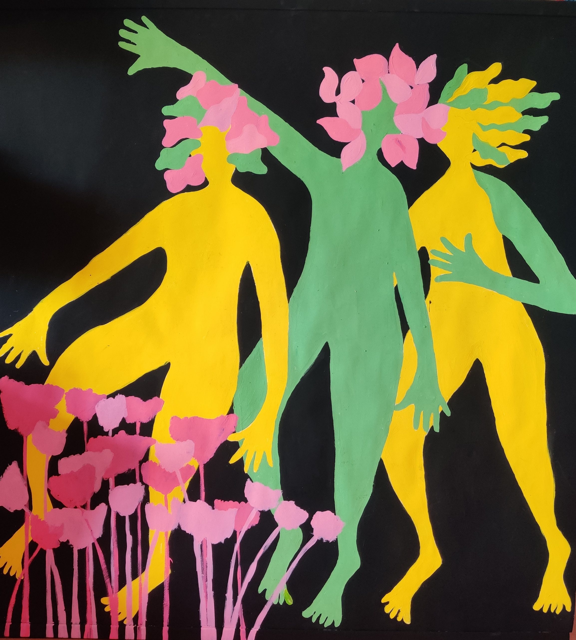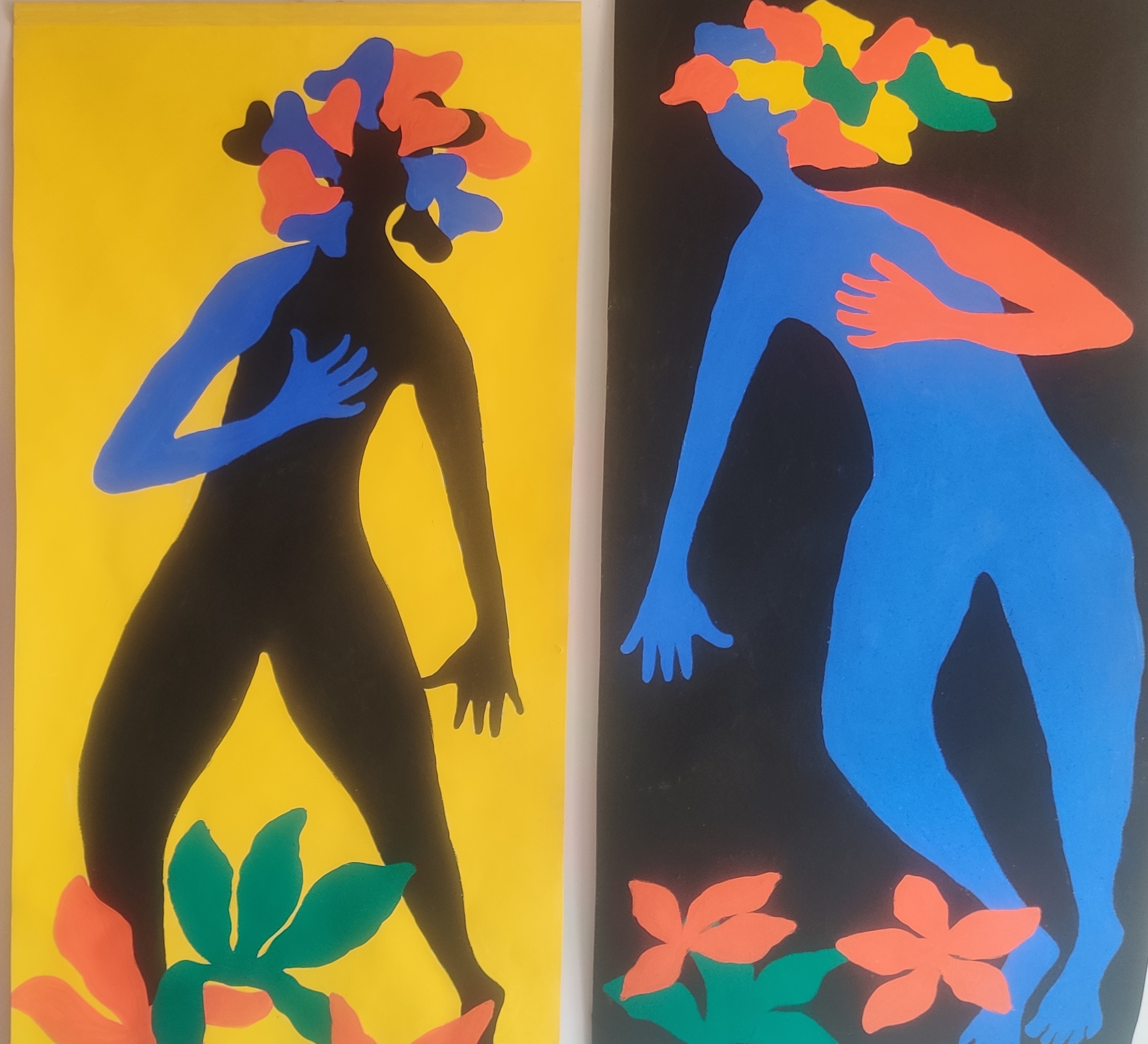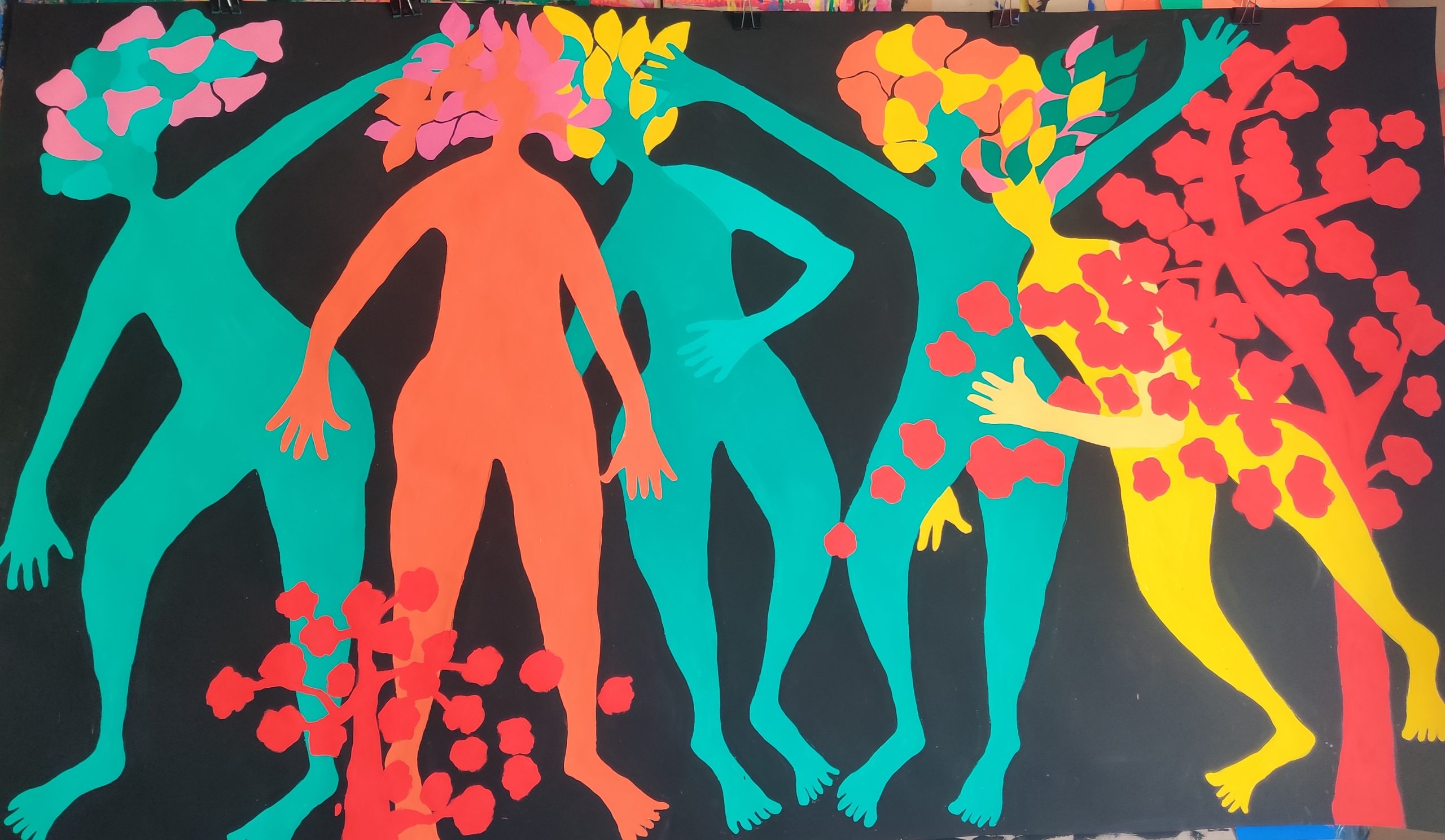 - JOUR DE FÊTE - 300cm x 220cm : 2 panneaux 150cm x 220cm - gouache pigments naturels sur papier 300grs